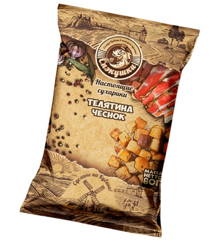 Это оригинальные хрустящие снеки с насыщенным ароматом и пикантным вкусом телятины и чеснока.